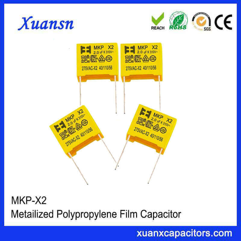 The main functions of the MKP x2 capacitor 205K 275VAC in the circuit are: power supply cross-line circuit, EMI filtering, and spark elimination circuit to ensure that the finished electronic product meets EMC requirements.