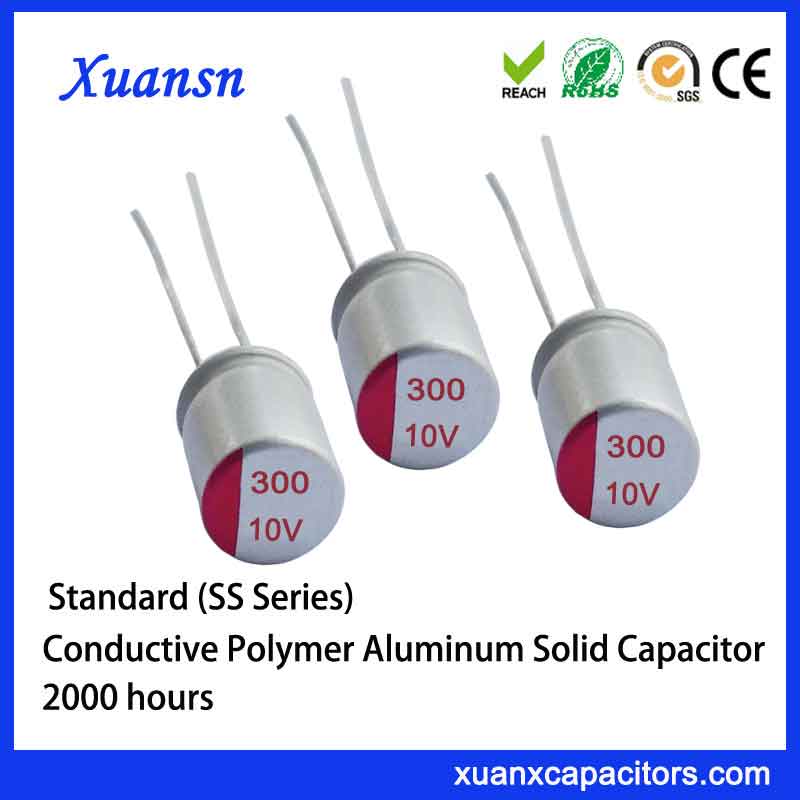 solid electrolytic capacitor 330uf 10v has superior characteristics such as environmental protection, low impedance, high and low temperature stability, high ripple resistance and high reliability, and is suitable for computer motherboards, servers, graphics cards, etc.
