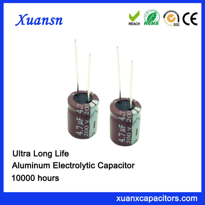 - 4.7uf 200v long life radial aluminum electrolytic capacitor