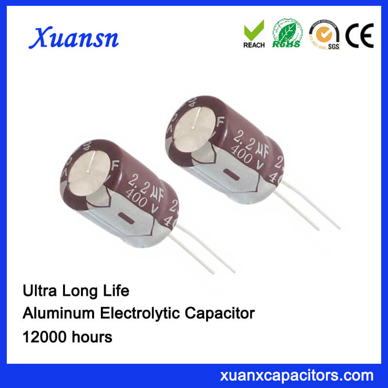 Supply Aluminum Capacitor 2.2uf 400v is our 12000hours long life series. The radial alumium electrolytic capacitor is suitable for LED power supply, , waterproof power supply, street lamp power supply, mining lamp power supply, ballast and household appliances.