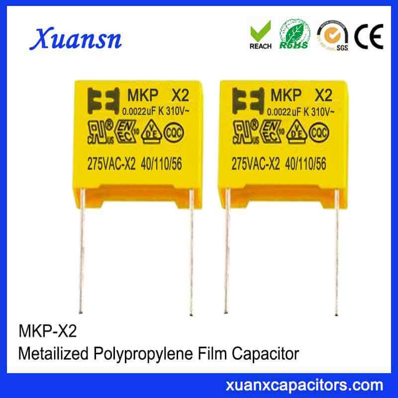275vac capacitor X2 series of film capacitors are mainly used for EMI suppression by the L/N jumper of the power input, and used in parallel with the input port.