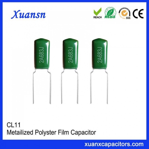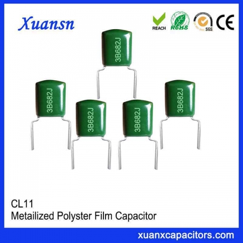 Mylar capacitor CL11 682J1200V vacuum packaging, high temperature and humidity resistance, widely used in video equipment, suitable for DC and pulse circuits of electronic equipment.