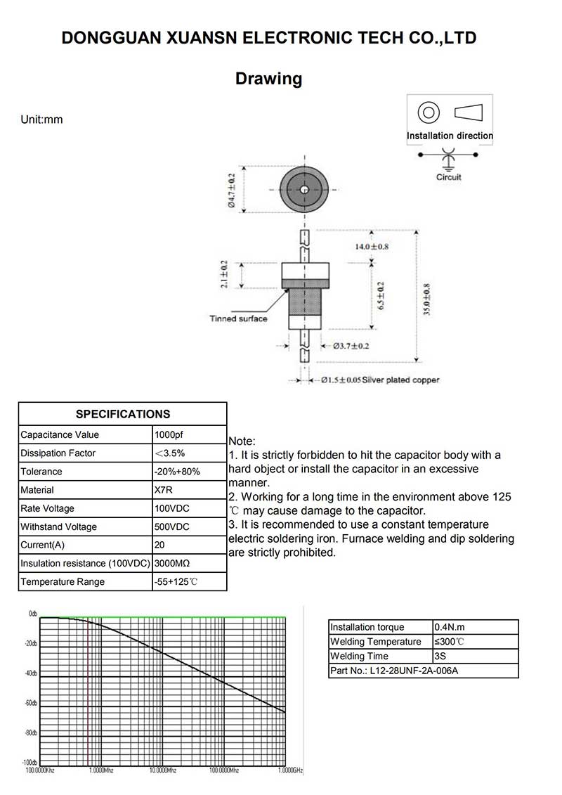 Welded ceramic feedthrough capacitor are small in size and effectively use space. They are the most ideal product for small installation spaces. They are mainly used to filter signals, data lines and AC power lines.