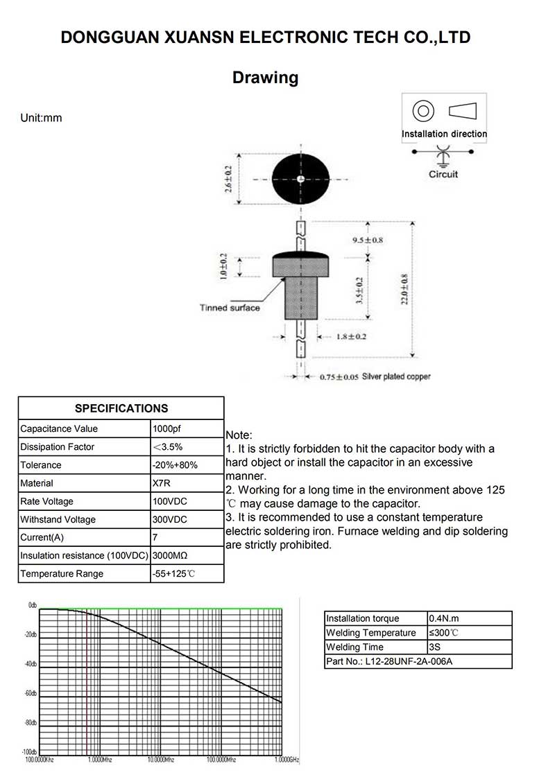 The welding time of Welded feedthrough capacitor should be minimized, and the temperature should be controlled to not exceed 280 ℃. Natural cooling should be used to cool to room temperature, so that the temperature difference stress of the solder joints gradually relaxes, and air cooling is avoided.