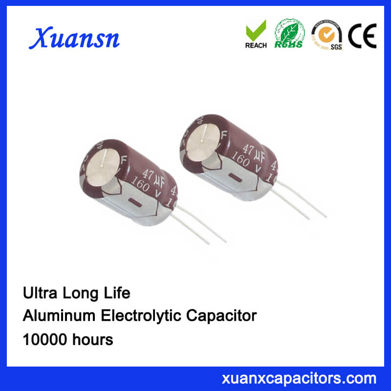 - 47uf 160v long life radial aluminum electrolytic capacitor