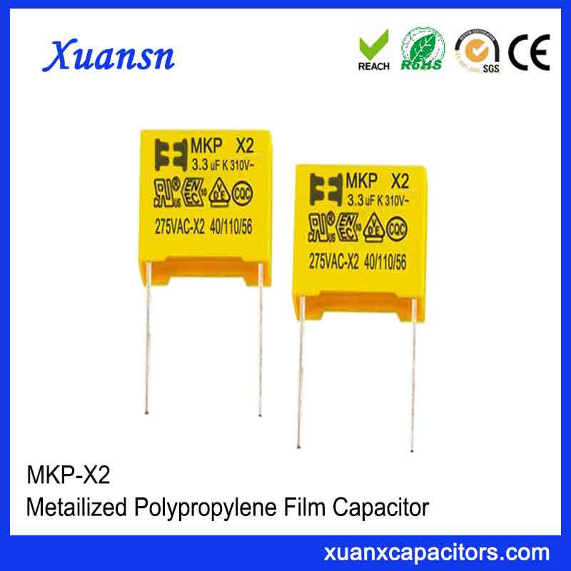 X2 capacitor 3.3uf 275VAC is a thin film capacitor with small size and excellent flame retardant performance. Widely used in anti-interference occasions such as power supply cross-line.