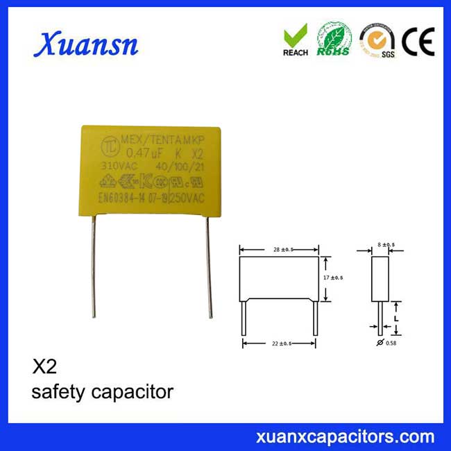 x2 metallized polypropylene film capacitor 474K310V Parameter