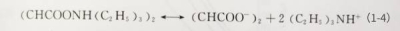 Cation (:C2 H5) 3 NH+Easily solvated in DMF, shifting the ionization equilibrium to the right. When ethylene glycol is added to the DMF solvent, since it is an excellent solvent for negative ions, it can solvate maleate ions at the same time, making the overall solvation effect stronger.