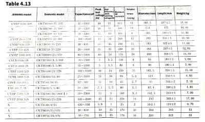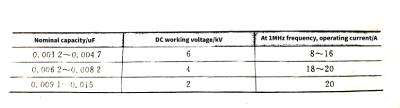 The capacitance, rated voltage and operating current data of CYS-4 mica capacitors at different frequencies are shown in Table 4.6