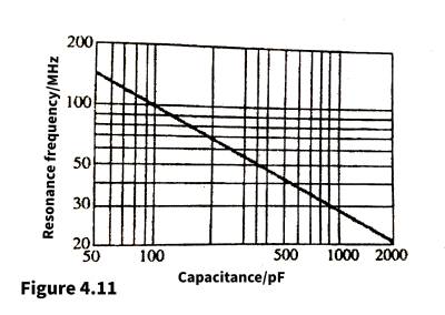 🤽(5) Spectral vibration frequency. Due to the existence of the equivalent series inductance, the vacuum capacitor also has the problem of resonant frequency, that is, the vacuum capacitor exhibits an inductive characteristic when the resonant frequency is above the resonant frequency, so the actual working frequency of the vacuum capacitor must be lower than the resonant frequency. Figure 4.11 shows the relationship between the resonant frequency of a vacuum capacitor and the capacitance.