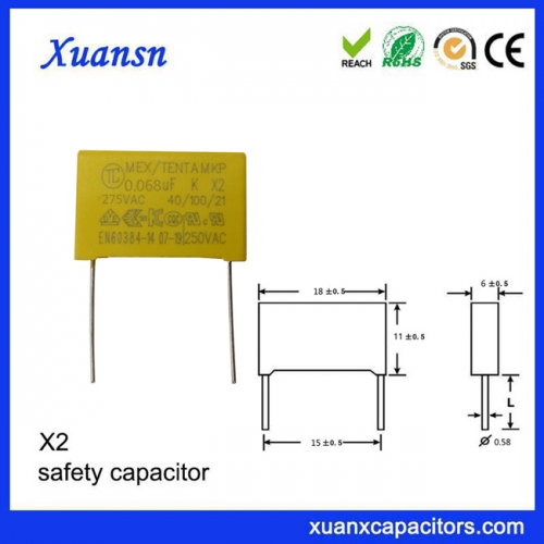 X2 capacitor for power supply electromagnetic interference suppression 225k275VAC