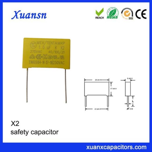 0.1uF X2 Safety Capacitor 275VAC Polypropylene Film with Flame Retardant Properties UL and SEMKO Certified