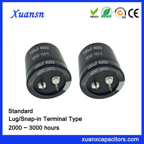 Snap in capacitor is xuansn one of main products, xuansn have three type of snap in capacitor, they are 85℃ 2000 to 3000 hours general type, 105℃ 2000 to 3000 hours standard type and 85℃ 5000 to 6000 hours long life type.