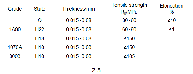 Note: Ο represents the soft foil after annealing, H18, H22 represents the hard foil with different tensile strength.