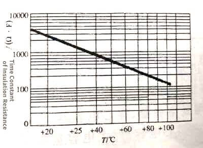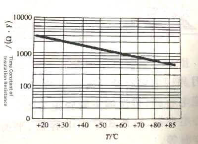 The insulation resistance of X7R dielectric ceramic capacitors decreases from 4000s (or Ω.F) at about +15°C to a little over 120s at +100°C; the insulation resistance of Y5V dielectric ceramic capacitors changes with temperature than that of X7R, as shown in Figure 3.31 .