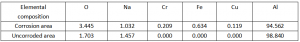 To further explore the reasons for preferential corrosion, elemental analysis was performed on the corroded and uncorroded regions. The EDS spectrum is shown in Figure 3-23, and the element composition is shown in Table 3-2.