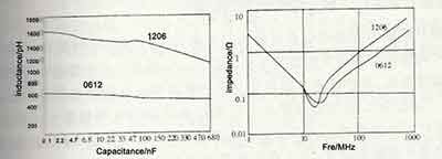 🍬As the distance between the two electrodes is shortened, the parasitic inductance is reduced by about half, so that the resonant frequency of the capacitor will increase to 142% to 150% of the original 1206 package, as shown in the figure below.