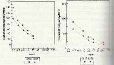 The parasitic inductance is much reduced because the lead wire is removed from the multilayer ceramic capacitor. For the lead wire, the inductance of about 1mm length will be 1nH, so the influence of the lead wire of different length on the frequency characteristics is shown in the figure below.