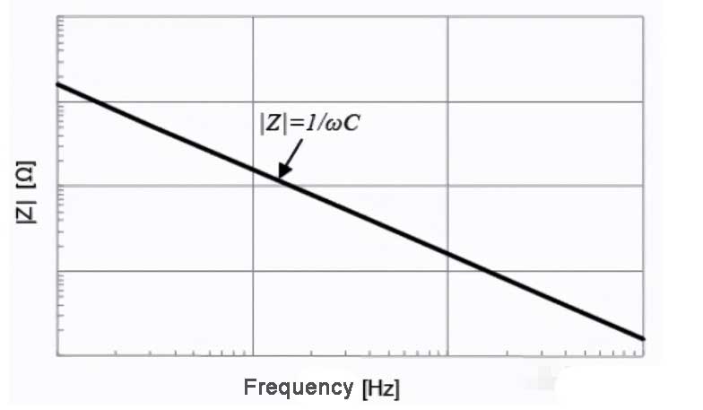The ideal capacitor, as the frequency increases, the impedance becomes lower and lower. See the impedance frequency curve in the figure below.