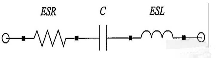 However, the actual capacitor has parasitic parameters. The following figure is a simplified equivalent model of the capacitor. Due to the existence of the series equivalent resistance ESR and the series equivalent inductance ESL, the impedance frequency characteristics of the capacitor have undergone tremendous changes.