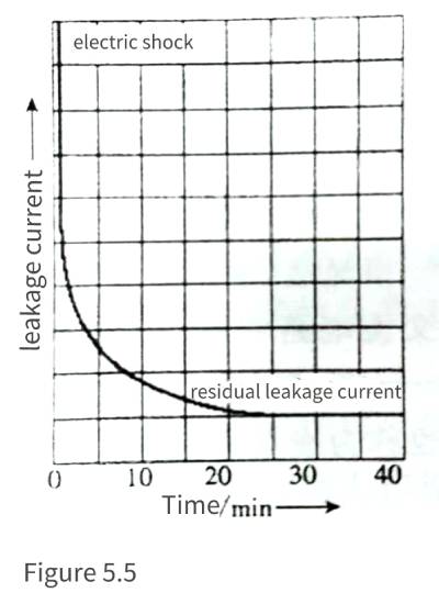 At 25 C, the capacitor under test is connected in series with a 1000Ω protection resistor to the rated voltage, and the leakage current is measured. After applying the voltage for 5 minutes, the leakage current does not exceed the maximum value in the specification. Small-capacity aluminum electrolytic capacitors can use 1 minute test results, and large-capacity aluminum electrolytic capacitors will require longer test times. Figure 5.5 shows the relationship between the current and time of the series resistance of the aluminum electrolytic capacitor connected to the DC voltage.