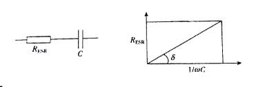 Obviously, this is the ratio of capacitive reactance to equivalent series resistance (ESR). Since equation (5.13) is very similar to the RC circuit in the AC circuit, and this ratio is very similar to the opposite side of the trigonometric function – the tangent function. Therefore, the dissipation factor (DF) of electrolytic capacitors is also called loss tangent (tanδ) in many technical literatures, as shown in Figure 5.6.